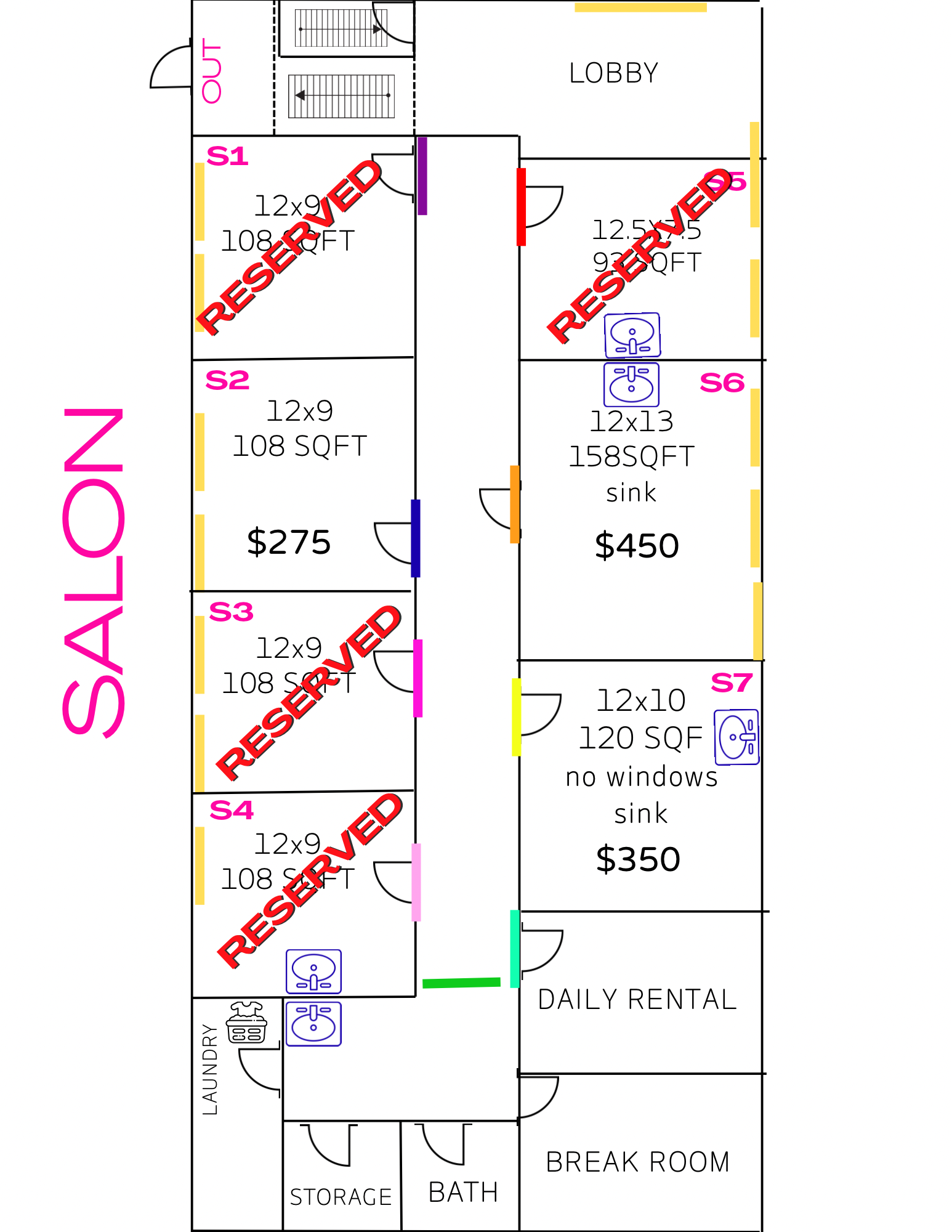 3 Restrooms + 2 client lobbies (snacks + drinks provided for guests)